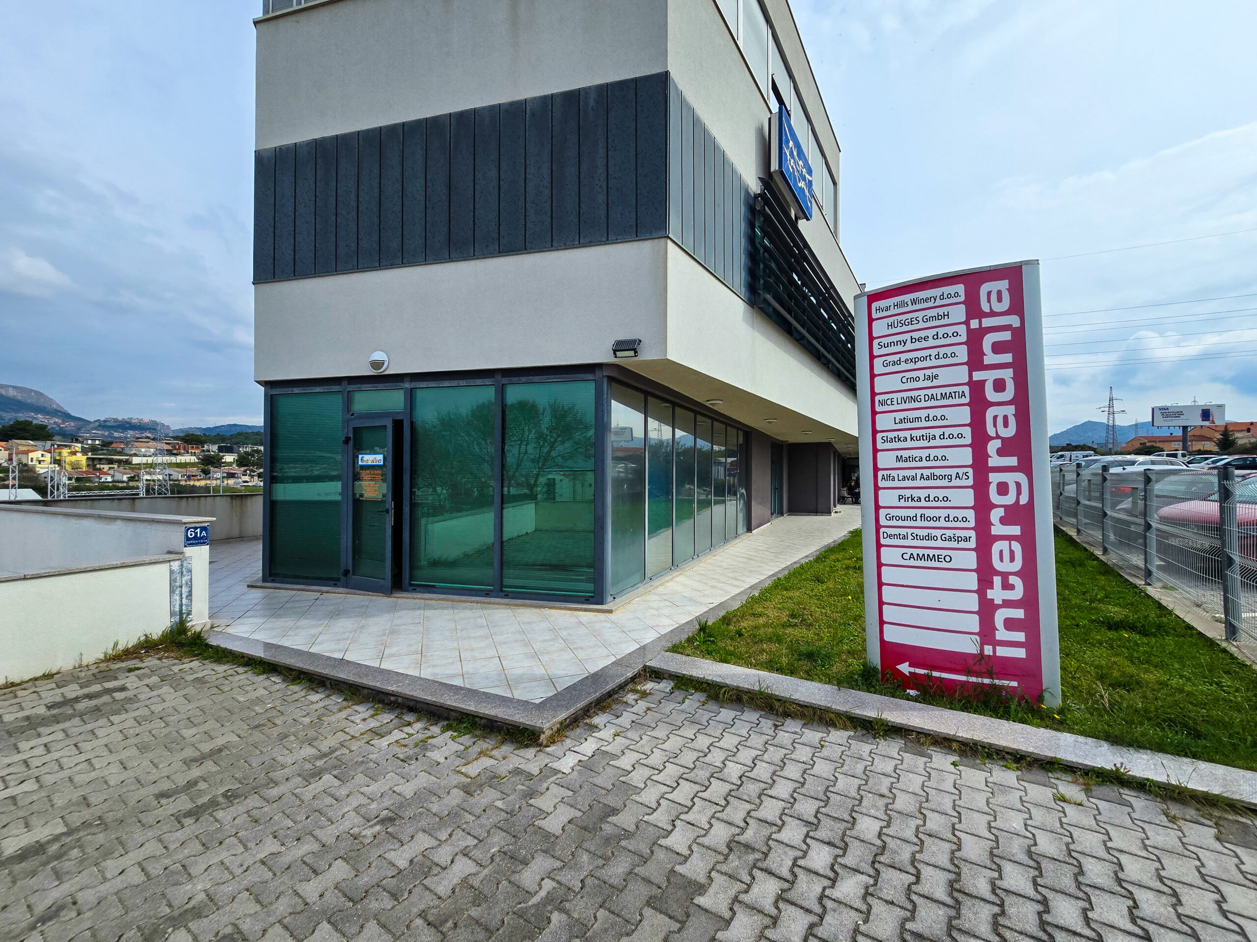 Daje se u zakup poslovni prostor ukupne površine 77,55 m², smješten u prizemlju poslovne zgrade u ulici Zoranićeva 61, Dračevac (Solin/Split).