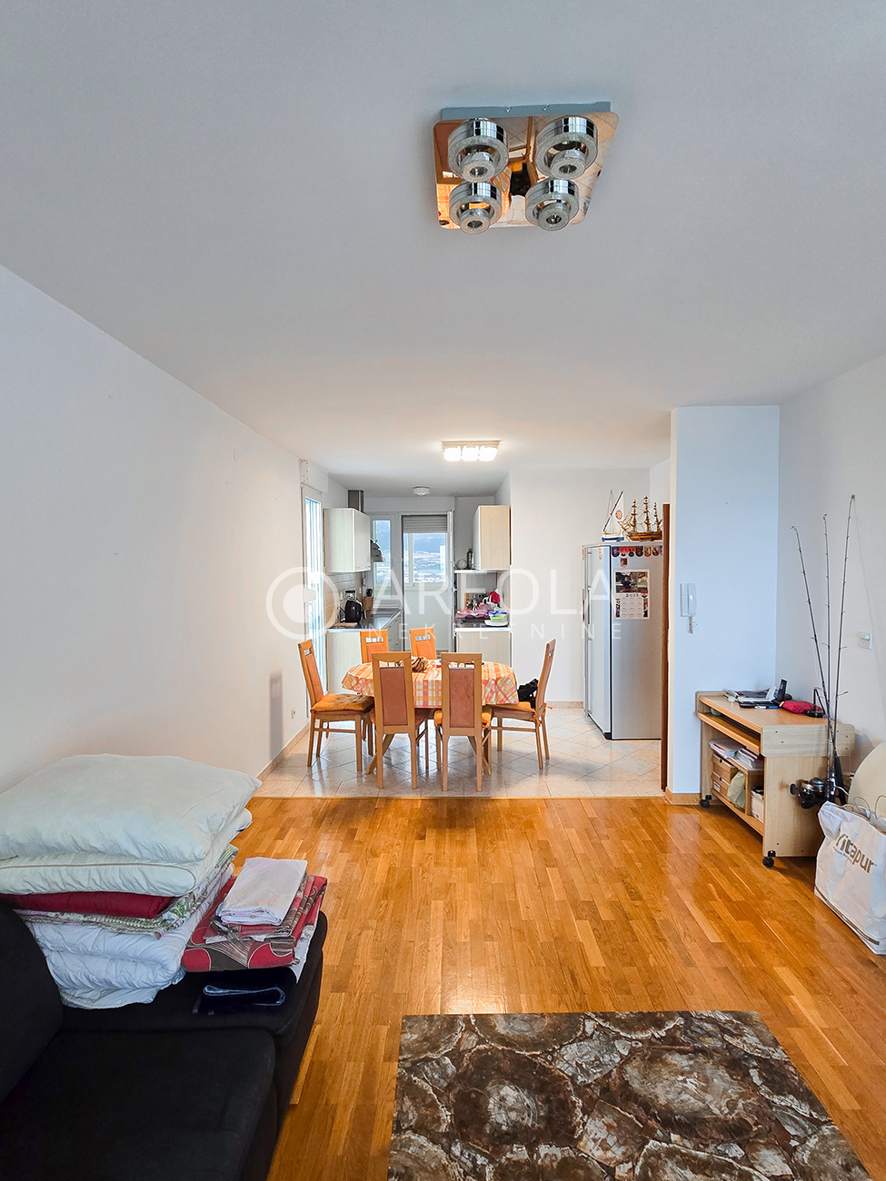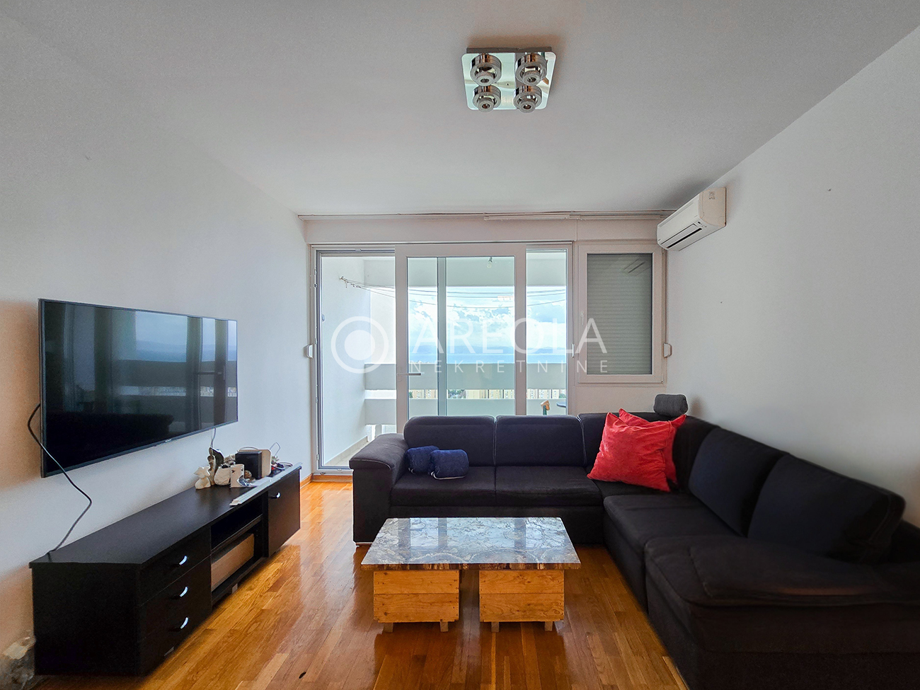 Stan je kompletno namješten i opremljen, uključujući: klima uređaj, perilicu rublja, posuđe i sve što je potrebno za svakodnevni život.