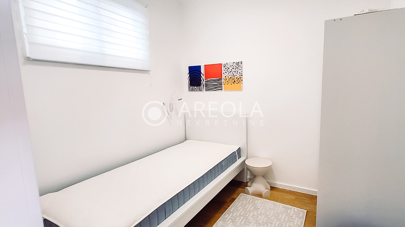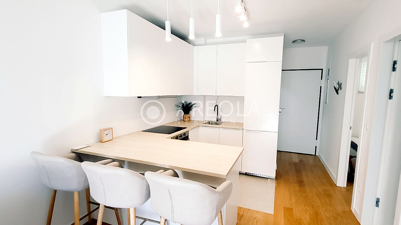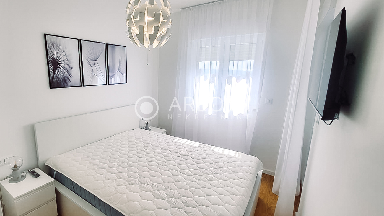 Stan je potpuno novoopremljen i namješten, te se iznajmljuje po prvi put. Na raspolaganju je i parkirno mjesto u garaži.
